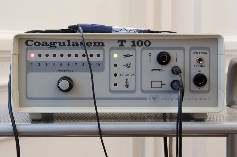 L'instrument est un appareil électrique de haute fréquence (électrocoagulateur) et relié à une pièce à main ou stylo sur lequel est placée l’aiguille stérile à usage unique. Selon le médecin, la zone à traiter et le désir de la patiente, un traitement peut durer de 5 à 30 minutes, en fonction de la pilosité et de la zone à traiter. appareil épilation électriqueaiguille épilation
