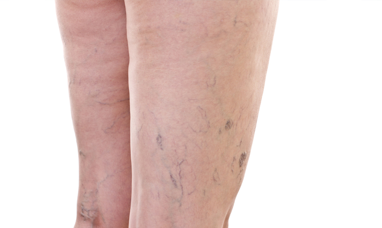 Les varicosités rouges, bleues ou violettes des jambes et du visage peuvent découler de l’exposition au soleil,